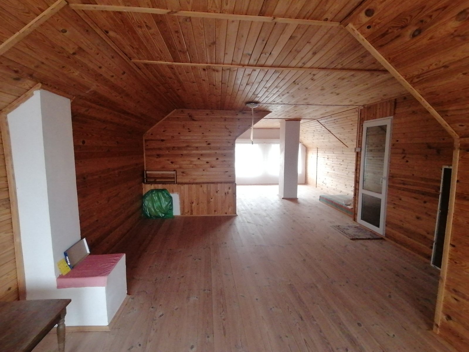 Цокольный этаж – утеплённый гараж с автоматическими воротами на пульте, котельной и подсобными помещениями. Первый этаж включает в себя просторную гостиную площадью 23,7 м², кухню-столовую 14,8 м², санузел и коридор. На втором этаже расположены 3 комнаты площадью 18,0 м², 12,2 м² и 11,1 м², ванная комната 6,9 м² и коридор. Мансардный этаж состоит из одного просторного помещения, обшитого деревом.