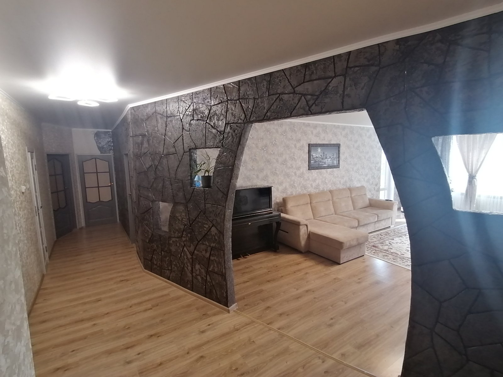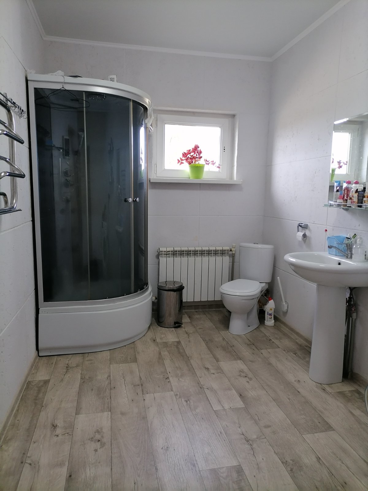 Стены – блок, пеноплекс, штукатурка. Крыша – ондулин. Качественные стеклопакеты. Отопление газовое; вода – скважина; канализация – местная. Дополнительно имеется бойлер для подогрева воды.