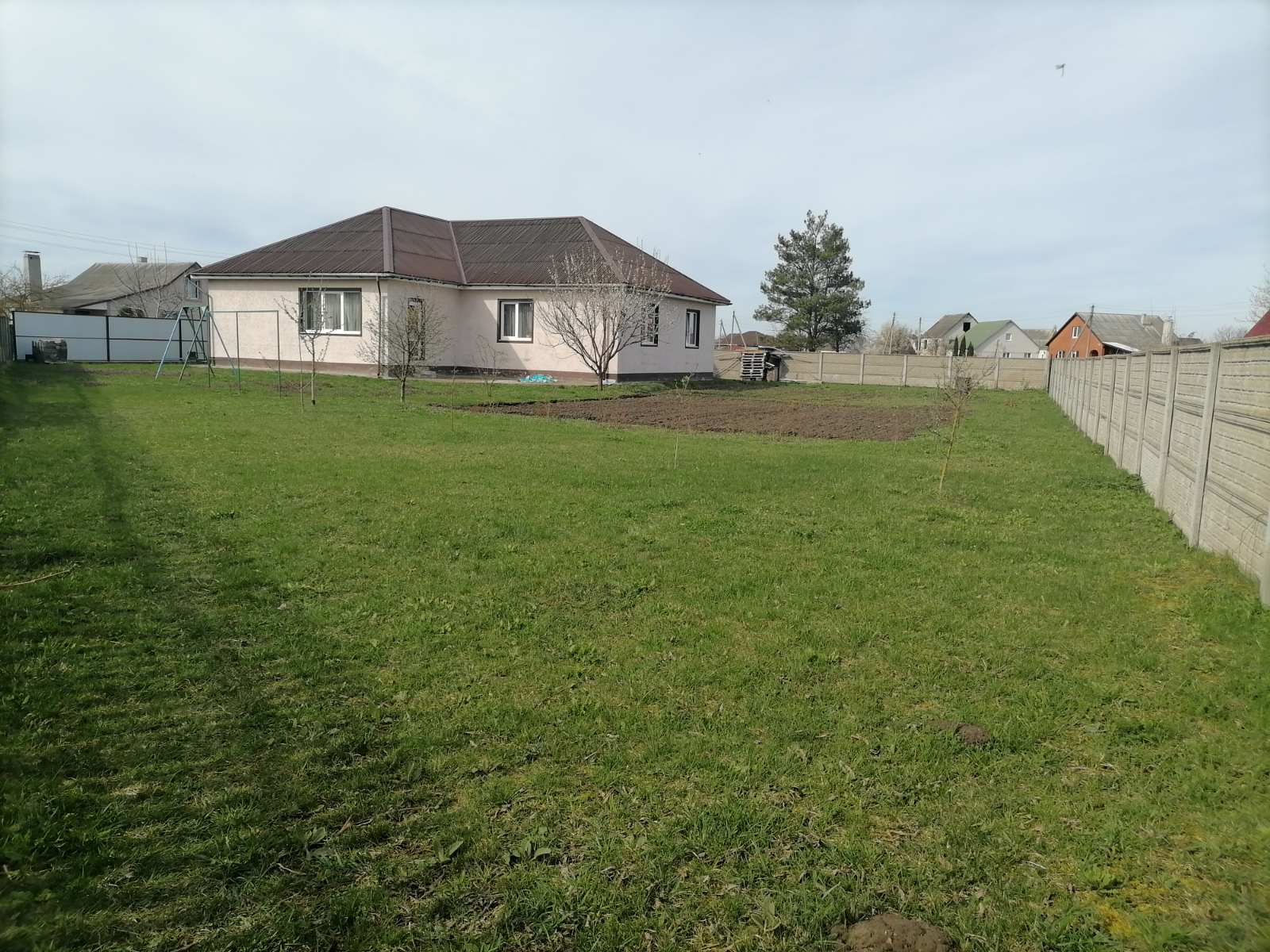 Дом расположен на угловом участке площадью 0,1363 га. Соседи только с одной стороны. Отличное месторасположение. От асфальта и остановки общественного транспорта – 50 метров. Рядом магазин.
